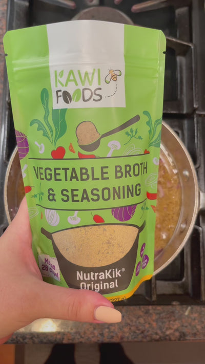 Rethink vegetable broth with NutraKik® Original, the clean, flavorful, plant-based alternative. Say goodbye to bulky broth cartons that expire in days and hello to long-lasting flavor in a convenient, shelf-stable powder. NutraKik® Original is a healthy vegetable broth and all-purpose seasoning blend crafted with 12 herbs and spices to deliver rich, homemade flavor in seconds.